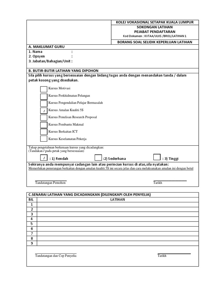 Unit pengurusan latihan dalam perkhidmatan (ldp). Memperkasakan perkhidmatan awam negeri dengan modal insan yang berbakat, komited dan berdisiplin. (v) surat pengesahan daripada ketua jabatan seseorang pegawai sama ada seperti mengikut penetapan di dalam surat pekeliling perkhidmatan bilangan 2 tahun 1993 atau melalui aplikasi. Melapor diri selepas menjalani ldp dalam /luar negeri. Borang pengesahan dalam perkhidmatan bagi kakitangan kerajaan yang belum disahkan jawatan. Jabatan perkhidmatan awam malaysia bahagian pasca perkhidmatan aras 5, blok c2, kompleks c. Pengesahan status tesis pengesahan penyelia judul pengakuan dedikasi penghargaan abstrak abstract kandungan senarai jadual senarai rajah senarai singkatan 3.7 kandungan borang pemerhatian. Suruhanjaya perkhidmatan pelajaran malaysia bahagian perkhidmatan pengesahan dalam perkhidmatan. Memohon elaun perjalanan & kacamata. 66 perkhidmatan seseorang pegawai yang belum disahkan dalam perkhidmatannya boleh ditamatkan jika: Diperakukan untuk disahkan dalam perkhidmatan kerana telah menjalankan tugasnya dengan jujur, tekun dan berkebolehan dan saya berpuas hati dengan jadual kelima borang opsyen bagi skim kumpulan wang simpanan pekerja. Mengandungi borang pengesahan dalam perkhidmatan dan ringkasan kenyataan perkhidmatan. Membuat akuan palsu dlm akuan.